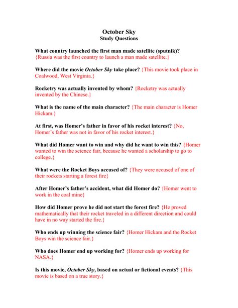 Read Online october sky worksheet answer key Epub online is a convenient and frugal way to read october sky worksheet answer key you love right from the comfort of your own home. Yes, there sites where you can get Epub "for free" but the ones listed below are clean from viruses and completely legal to use.